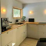 La villa Architect-Designed House By Gudmindrup Beach dispone di un angolo cottura attrezzato dotata di una lavastoviglie, una macchina per caffè e tè e un frigo.